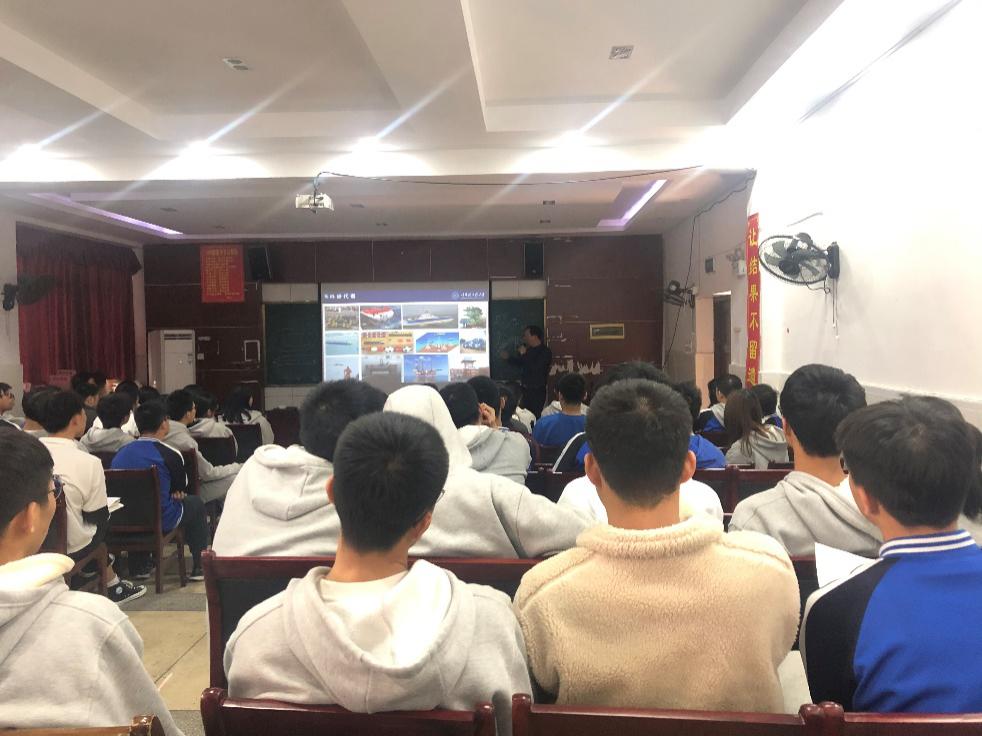 在招生宣传讲座中,招生组副组长、学院副院长钟志教授为同学们播放了我校的宣传片《深蓝的召唤》,并从专业角度出发,用幽默诙谐的语言为高中同学介绍了我校的发展历史、办学特色、国内外影响力、教学科研队伍建设、就业和升学等内容,讲座多次被同学们热烈的掌声打断。在互动交流环节里,招生组老师又与学生们交流介绍了我校的招生政策以及我校在湖南的招生录取情况。